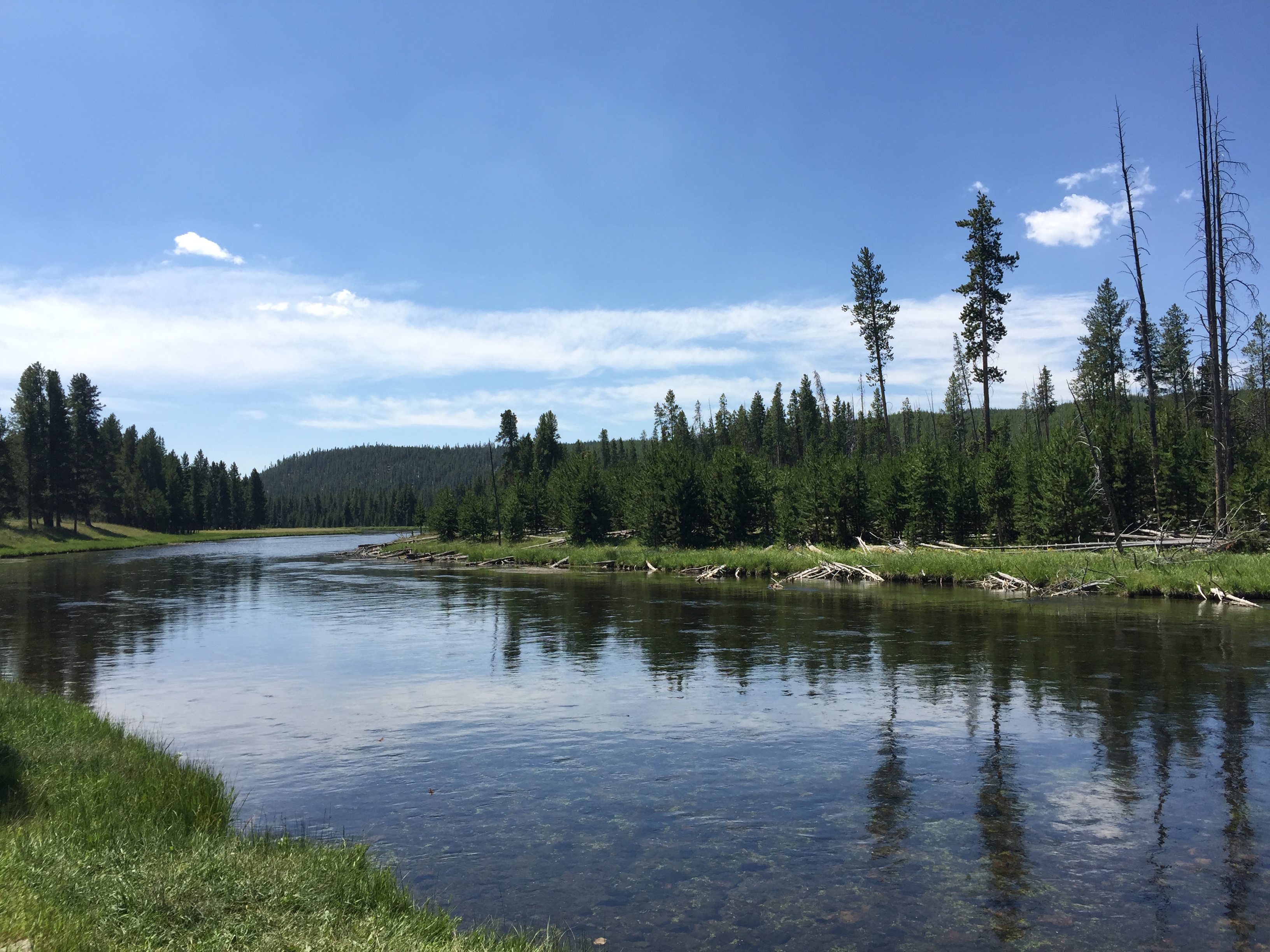 The first stop was along the Madison River, where we broke the rules right off, by walking out this riverside trail (no pets allowed more than 100 feet from the pavement) and began to soak in the beauty of this place. There was no one else there- it was an early pull-out and it seemed that everyone else was in a hurry to get to other places- so much to see… once back in the car, I simply could not drive more than 35 mph… so that’s what the pull outs are for….